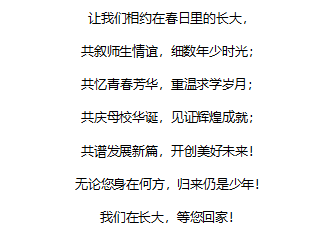 校园依旧,教室如昨,那些挑灯夜读的记忆、实验室里的讨论、操场上的欢笑都在这里静静等您回来。无论您身在何方,出走半生,归来仍是少年。