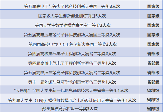科创赛场上,以“拓荒者”勇气屡创佳绩,在高电压与等离子体科技创新大赛等赛事中,累计获得国家级奖项10项、省部级16项、校级76项,共102项成果彰显创新实力。目前,班级8人推免至长安大学、华南理工大学、西北工业大学等高校,推免率40%,位居学院第一。