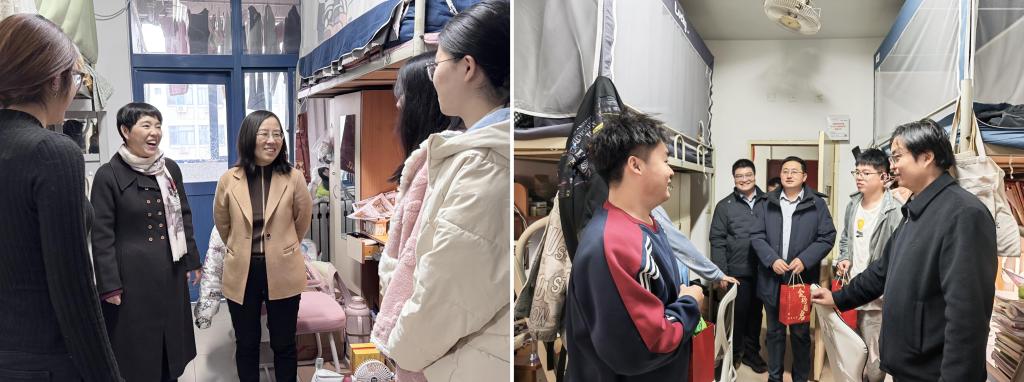 走访过程中,学院领导与同学们亲切交流,详细了解考研学生的复习进度、心理状态及生活需求,并送上精心准备的“考研加油包”,叮嘱大家在冲刺阶段注意劳逸结合、保持平稳心态,同时提醒做好防寒保暖,注意宿舍用电与消防安全,遵守校规校纪。随后,学院领导老师走访了其他年级学生宿舍,关心询问同学们的期末备考、课程学习与日常生活情况,强调要端正学风、诚信应考,注意人身与财产安全。通过面对面交流,学院进一步掌握了学生思想动态与实际需求,为后续针对性地开展教育管理与服务工作奠定基础。