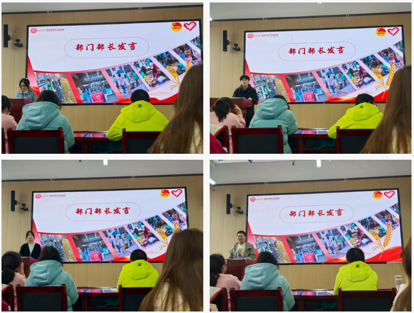 各部门部长代表对青志队全体成员做了上学期工作总结及本学期工作计划。上学期各部门积极响应学院、高效完成各项工作与交办任务,用行动推进持续发展。在新学期也会扎实做好每一项实践任务,并且积极向大家征求志愿活动的意见,让青志队的工作能力更上一层楼。