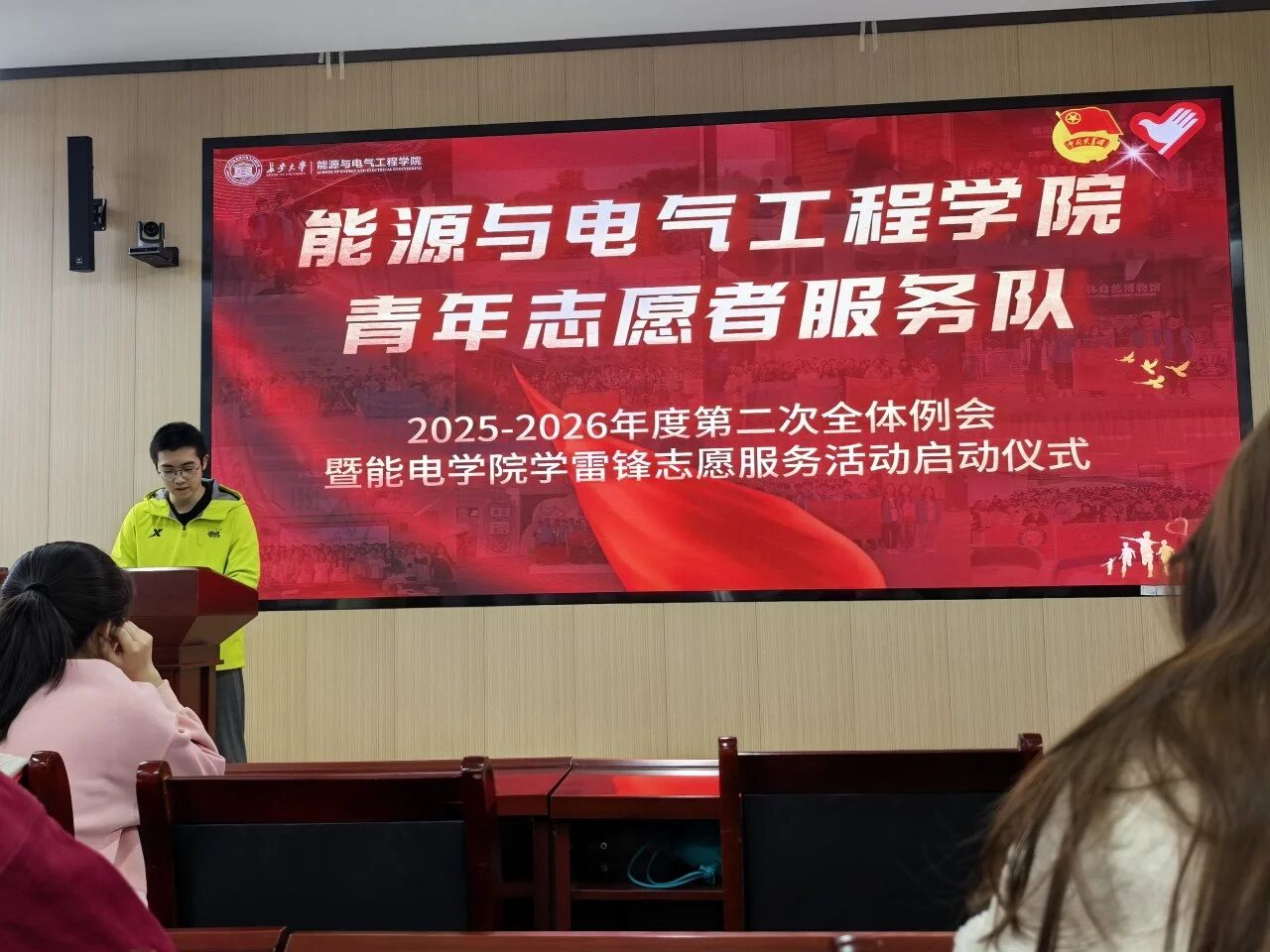 凌人钊首先向大家传达了陕西省青年志愿服务骨干培训班、长安大学志愿服务大讲堂、2026年学雷锋志愿服务活动启动仪式暨“学雷锋”主题宣讲活动三项会议精神,强调未来的青志队需要建立青年志愿者长效发展机制。凌人钊主席还强调了志愿服务的创新性与时效性。新时代的志愿服务要同时兼备温度与深度、热情和创新,用创新的方式提升志愿服务效果。最后对2025年度进行工作回顾,在过去的一个学期,我们的品牌志愿服务项目持续运转。从整体表现上看,大家参与志愿的积极较高,但仍有部分同学的积极性不足,希望大家都能踊跃参与到各项活动中,在奉献中收获成长、实现自我价值。